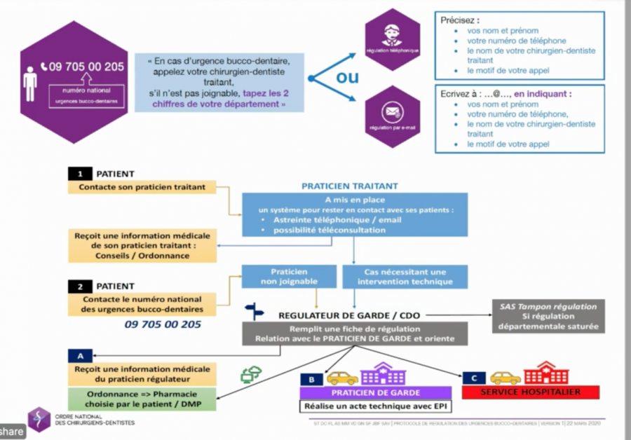 Les patients qui n’ont pas de chirurgien-dentiste traitant peuvent appeler ce numéro. Ils tomberont sur un message leur expliquant la situation et leur demandant de renseigner leur numéro de département.