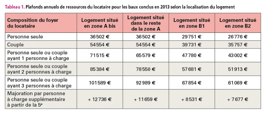 Les ressources annuelles du locataire ne doivent pas dépasser les plafonds indiqués dans le tableau 1.![]()