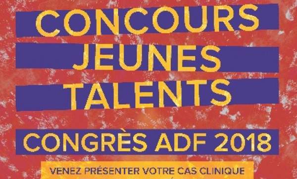 Étudiant ou diplômé, interne ou en exercice libéral, vous êtes âgé de moins de 30 ans et vous êtes séduit par l’idée de présenter à vos confrères un cas clinique ? Participez donc au concours Jeunes Talents de l’ADF. Il vous suffit pour cela de soumettre, avant le 30 juin sur le site de l’ADF (www.adfcongres.com), une vidéo de moins de 2 minutes dans laquelle vous présentez, seul, un cas clinique, en langue française.