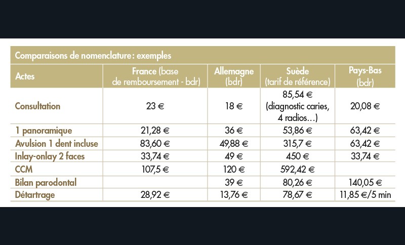 Côté organisation, pour se consacrer aux soins complexes, plus rémunérateurs, les praticiens libéraux délèguent la réalisation des soins de base à des assistant(e)s dentaires spécialisé(e)s ou des hygiénistes qualifiés et, en vue de rationaliser les coûts, ont recours à des dentistes salariés et tendent à regrouper les cabinets. La stratégie de santé de ces pays « est clairement axée sur la prévention et la prise en charge des enfants. Ces pays présentent des taux de recours annuels aux soins élevés (71,3 % en Allemagne, 72,7 % en Suède et 80 % au Pays-Bas contre… 41 % en France, N.D.L.R.) et une bonne santé bucco-dentaire de la population, en particulier chez les enfants en dépit de niveaux de dépenses publiques, de montants et de modalités de remboursement très différents ».