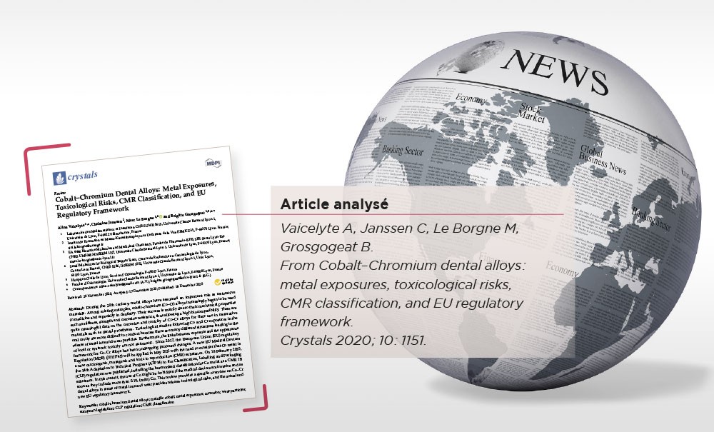 Alors que les tendances plaident pour des biomatériaux de plus en plus biocompatibles, quels sont, de ce point de vue, la place et l’avenir des alliages Co-Cr au regard de leur toxicité potentielle, mais aussi des évolutions réglementaires ? C’est précisément ce que nous livrent les auteurs français de cette revue narrative parue dans un numéro spécial Co-Cr de Crystals, revue de matériaux. Ils expliquent d’abord qu’il s’agit d’alliages complexes incluant de multiples composants, mais dans lesquels le couple Co-Cr représente environ 80 % de l’alliage dans lequel le cobalt est largement majoritaire. D’où sa dénomination d’alliage cobalt-chrome (et non chrome-cobalt comme on l’entend trop souvent !). Si ces éléments métalliques jouent un rôle important dans le métabolisme humain, ils peuvent aussi être considérés comme toxiques sous certaines formes ioniques et au-delà de certains seuils. Bien que les alliages Co-Cr soient très résistants à la corrosion grâce à la « protection » d’une couche d’oxyde chrome très adhérente en surface, les conditions d’usage, dans le milieu buccal en particulier, des phénomènes de corrosion complexes…