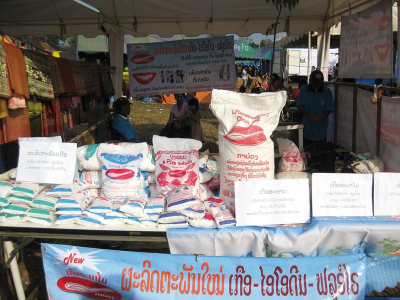 L’enjeu est de produire au Laos, d’ici à trois ans, 6000 tonnes de sel iodé et fluoré par an permettant d’atteindre 35% de la population. Le projet pilote de fluoration du sel a débuté en 2010 avec l’usine de sel de Khok Saat et cette extension intervient dix ans après que le ministère de la Santé laotien a axé sa stratégie sur la fluoration du sel, le contrôle de qualité des dentifrices et les programmes de prévention en milieu scolaire.