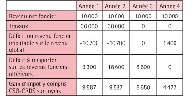 Nous ne reviendrons pas sur la loi Duflot, abordée dans un article paru le 17 avril 2013 (ID n° 15). Il existe une autre solution très intéressante pour acheter de l’immobilier avec une partie défiscalisable : la loi sur le déficit foncier, dite loi Balladur. Le principe repose sur l’achat d’un bien immobilier locatif (appartement, local commercial ou local industriel) pour y réaliser des travauxd’amélioration, de réparation et/ou d’entretien. Ces dépenses permettent à l’investisseur de créer une charge qui sera déductible en totalité de ses revenus fonciers. Et s’il y a dépassement des revenus fonciers, ce dépassement est déductible des autres revenus, y compris d’activité, dans la limite de 10 700 €. Tout déficit foncier supérieur sera reporté sur les revenus fonciers pendant dix ans.