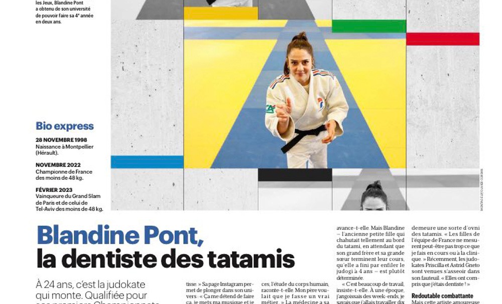 « À 24 ans, la judokate, licenciée à Champigny-sur-Marne (Val-de-Marne), mène une vie à 100 à l’heure », relate l’édition du Parisien du 20 mars qui consacre un portait à notre future consœur. « Deux entraînements de judo par jour, les cours que j’essaie de caser et une journée en clinique, chaque mercredi », détaille l’étudiante actuellement en 4e année à l’UFR d’Odontologie d’Université Paris Cité (Garancière). « J’y ai rencontré des personnes d’une bienveillance incroyable.