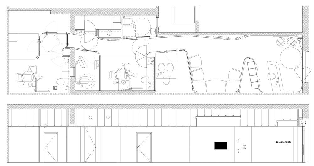 Les concepteurs d’YLAB Arquitectos expliquent leur démarche pour accomplir les missions de design global (image de marque et design d’intérieur) qui leur ont été confiées par un jeune chirurgien-dentiste souhaitant proposer, dans le quartier central de l’Ensanche à Barcelone, un cabinet moderne, fonctionnel, reflétant « le charme et l’agrément suggéré par son nom : Dental Angels ».