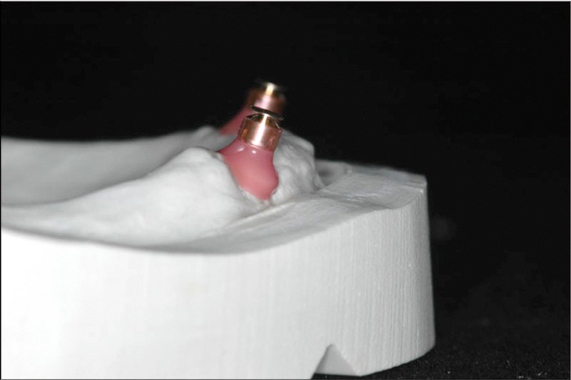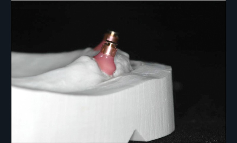 – les empreintes : elles doivent être adaptées à chaque cas et aussi tenir compte de l’existence éventuelle de crêtes “flottantes”. Les porte-empreintes individuels et les matériaux sont choisis par le praticien selon la situation et le terrain ;