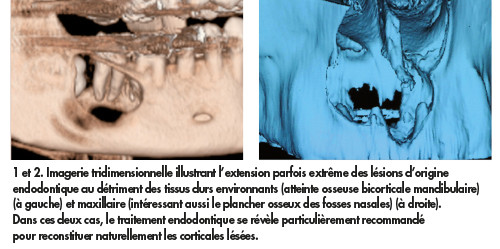 Si son objectif principal vise l’élimination des facteurs bactériens, la discipline endodontique offre aussi des perspectives de réparation naturelle des tables osseuses atteintes par les infections.