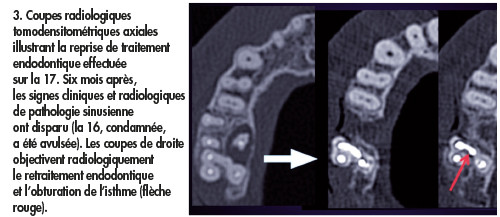 Naturellement, l’indication de la conservation de la dent doit être clairement établie. Dans ce domaine, l’examen tomodensitométrique (scanner ou cone beam) constitue un outil diagnostique primordial et permet d’orienter la planification endo-chirurgicale guidée selon les principes de préservation osseuse. L’évaluation des risques de fractures dentaires liés à la dépose des éléments prothétiques intra-radiculaires permet parfois de privilégier une chirurgie endodontique en première intention.