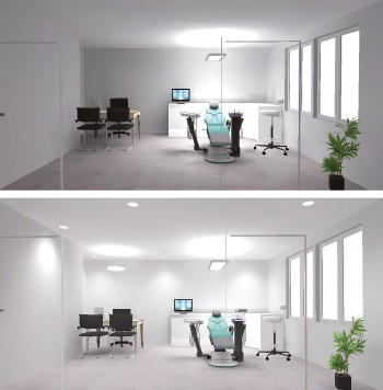 En cabinet dentaire, il faut veiller à l’uniformité tant de la tache de lumière du scialytique, que de toute la salle de soin.