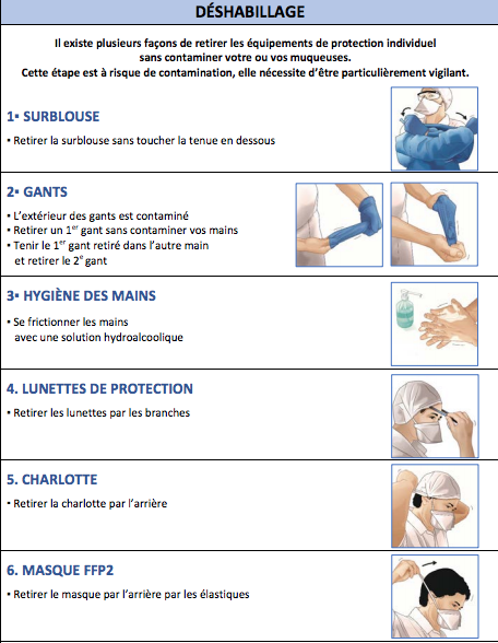 Il s’agit de recommandations destinées aux praticiens qui effectuent leurs gardes. Vous y trouverez un protocole de prise en charge (précautions lors de l’examen clinique ou d’un soin, la tenue nécessaire, la conduite à tenir entre deux rendez-vous, etc…) mais aussi un protocole « lavage des mains », les règles de port des masques, de l’habillage et du déshabillage ou encore la préparation d’une solution d’hypochlorite de sodium à 0,1% à partir d’eau de javel.