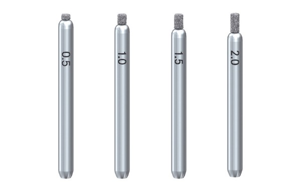 Ces instruments sont disponibles dans 4 versions : 0,5 mm, 1 mm, 1,5 mm et 2 mm.