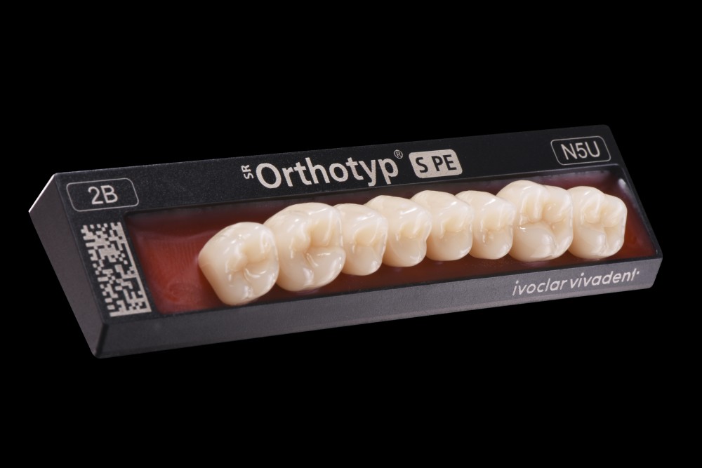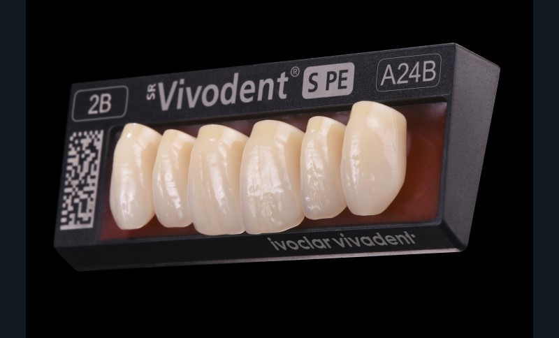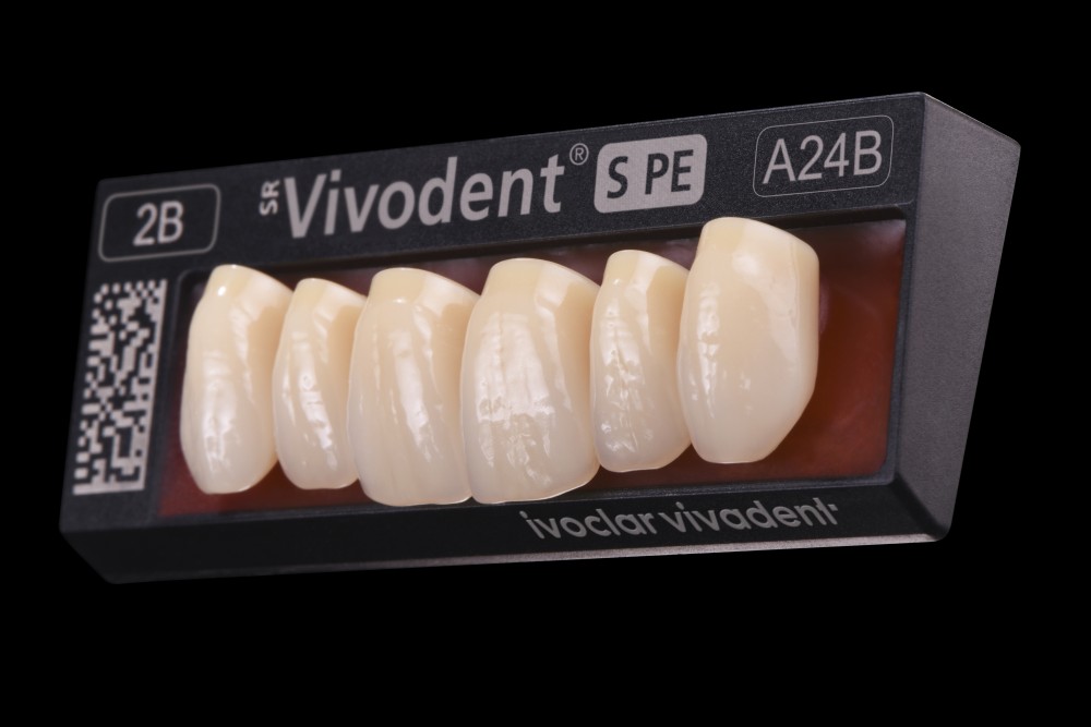 Il présente ainsi une plus grande résistance à la compression, tout en conservant une résistance à la flexion similaire à celle des résines PMMA classiques. Les dents antérieures SR Vivodent S PE existent en 15 formes maxillaires et 5 formes mandibulaires. Les dents postérieures SR Orthotyp S PE existent en 4 formes maxillaires et 4 formes mandibulaires. Toutes sont disponibles dans les 20 teintes PE.