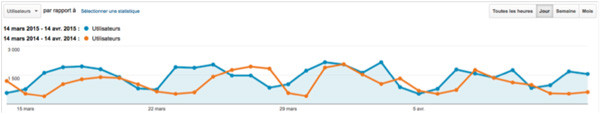 Sur la période mi-mars à mi-avril, la croissance a été de 32 % entre 2014 et 2015 (34 230 visiteurs uniques en 2014 contre 45 218 en 2015).