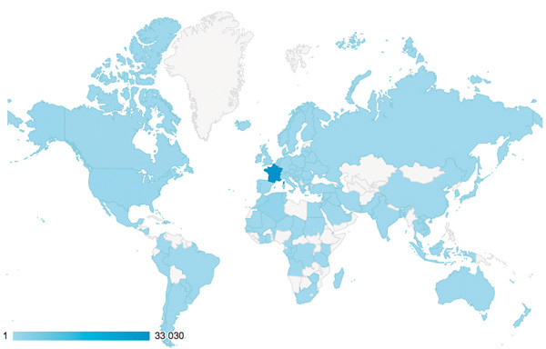 • L’apparition de posts en anglais a permis de faire croître le nombre de nos lecteurs américains. 11 posts en anglais ont été publiés depuis le début de cette année. Les visites venant des États-Unis ont ainsi doublées par rapport à l’année dernière. Il faut féliciter tous les auteurs de posts qui proposent leurs textes en anglais, en particulier pour les blogs de chirurgie orale, d’ODF et de dentisterie esthétique. Leur notoriété transatlantique est parfaitement légitime (fig. 2).