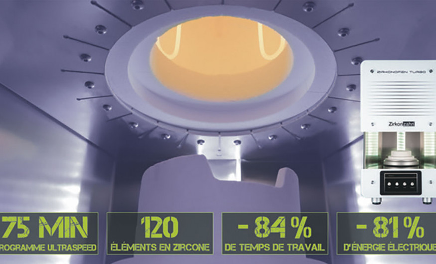 Grâce à une technologie de cuisson éprouvée et des taux de chauffage allant jusqu’à 150 °C/min, le four de frittage Zirkonofen Turbo fait gagner du temps et de l’énergie. Les petites structures en zircone peuvent être frittées à partir de 75 minutes. Le programme Ultraspeed permet d’économiser 84 % de temps et 73 % de consommation électrique par rapport au programme Standard. L’utilisateur peut installer rapidement des programmes de frittage personnalisés directement sur l’écran tactile du four ainsi que via l’application mobile Zirkonzahn.App. Cette appli permet aussi de surveiller le Zirkonofen Turbo à distance.