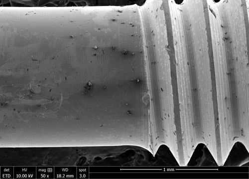On observe, au microscope électronique à balayage, une usure du filetage de la vis sur les premières spires qui peut expliquer en partie la perte de précharge (ou précontrainte) après serrage. Ce phénomène s’explique par les contraintes de frottement qui s’exercent lors du serrage à ce niveau, responsable d’usure par plasticité des matériaux.