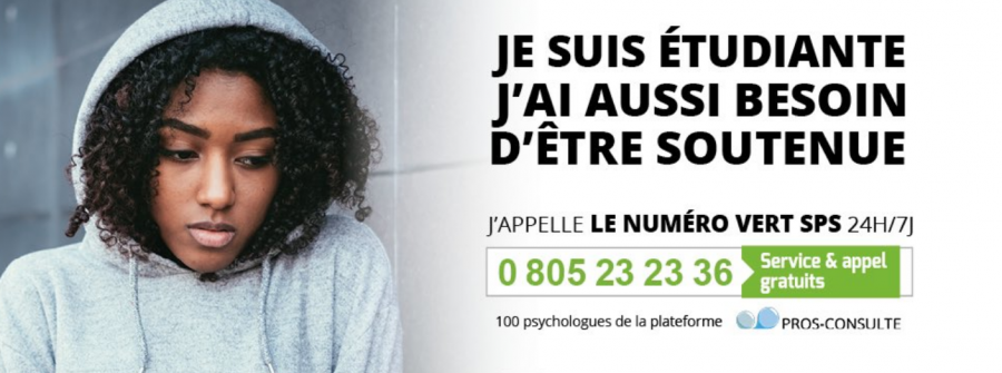 – L’association SPS assure une assistance psychologique aux professionnels de santé et aux étudiants, via son numéro vert (0 805 23 23 36 ouvert 24h/24 et 7/7), l’application gratuite « Asso SPS », ainsi que son réseau national du risque psycho-social composé de psychologues, médecins généralistes et psychiatres. https://www.soins-aux-etudiants.com.