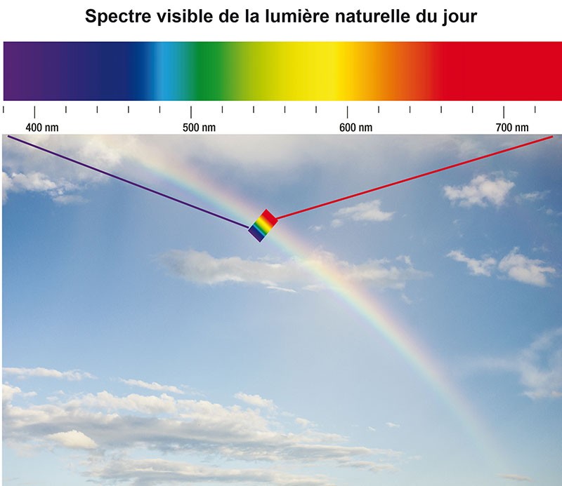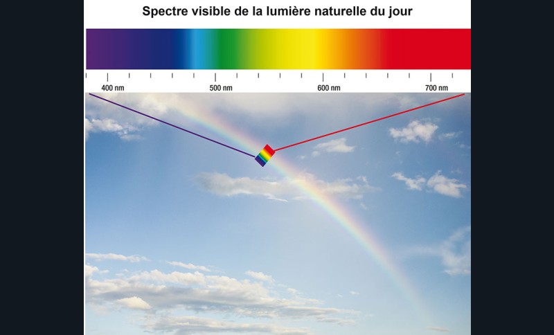 Si les notions d’éclairement (lux), de contraste (écart d’éclairement en % entre des zones définies) et de luminance (brillance d’une source lumineuse) sont facilement conceptualisées, elles ne se suffisent pas pour fabriquer un éclairage adapté. Un élément fondamental est à prendre en compte : le spectre de la lumière.