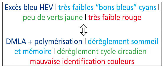 Les bleus HEV sont donc à l’origine d’éblouissement et de perte de sensibilité au contraste.
