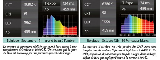 La technologie très récente des LED complexes permet de reproduire fidèlement l’illuminant normatif D65 de la lumière du jour à 6 500 K (fig. 9).