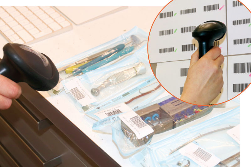 Protocole après un acte : ouverture de l’acte dans la fiche du patient, scan du nom de l’acte, scan de nom de l’instrument puis scan de l’étiquette de l’instrument (fig. 4).