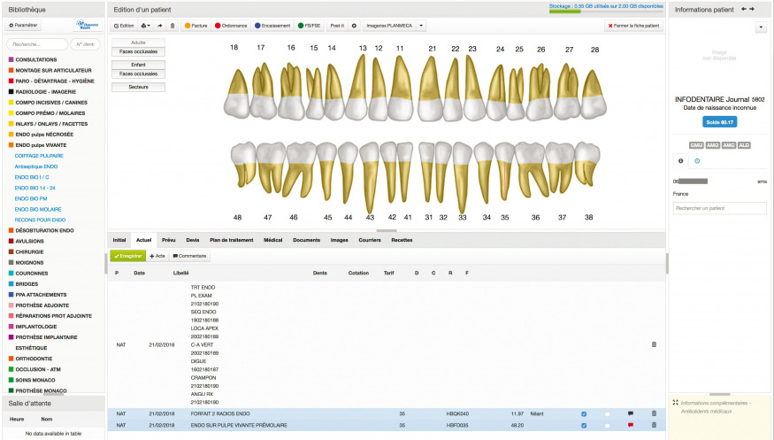 4. Vue des codes joints à l’acte dans le logiciel (type Ecoodentist).