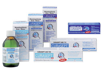 La gamme Curasept présente une large variété de dentifrices et de bains de bouches, avec plusieurs concentrations de CHX et surtout le système ADS, breveté, réduisant drastiquement l’apparition de colorations. Signalons que les dentifrices, sans laurylsulfate de sodium pour ne pas entamer la rémanence d’action de la CHX, sont de ce fait moins moussants que d’autres dentifrices, les rendant particulièrement adaptés au brossage électrique !