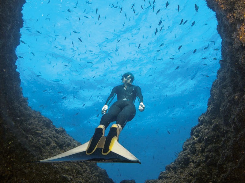 Fermer les yeux et écouter parler Alice Modolo. Vous aurez l’impression d’y être. Elle peut raconter une descente seconde par seconde, mètre par mètre. « Les premiers instants sont assez simples, tu vois ce qui se passe autour de toi. » Mais après 30 mètres, ça se gâte ! La flottabilité devient négative. Fini, la poussée d’Archimède. « Il fait noir, tu plonges dans l’inconnu total. Tu ne sais plus où tu es. Tu as oublié la gauche, la droite, le haut, le bas. Tu ne sais même plus trop si tu es dans l’eau ou dans les airs. » Puis, encore plus bas, les poumons se contractent, le cœur ralentit, et l’état de conscience diminue, « une sensation plutôt cool ».