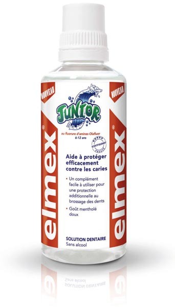 Outre le dentifrice et la brosse à dents, elmex propose désormais dans sa gamme Junior une solution dentaire à 250 ppm de fluorure d’amines Olafluor et fluorure de sodium spécifiquement conçue pour la denture mixte de l’enfant dès 6 ans. Utilisée pendant 30 secondes, en complément du brossage, elle est destinée à renforcer la protection contre les caries. « Elle dépose immédiatement sur les dents une couche protectrice qui favorise la reminéralisation de l’émail et la protection des dents contre les attaques acides bactériennes à l’origine des caries, et ce jusque dans les espaces interdentaires », indique le fabricant. Cette solution convient particulièrement aux porteurs d’appareils orthodontiques, toujours en complément d’un brossage soigneux et de l’utilisation d’accessoires interdentaires.