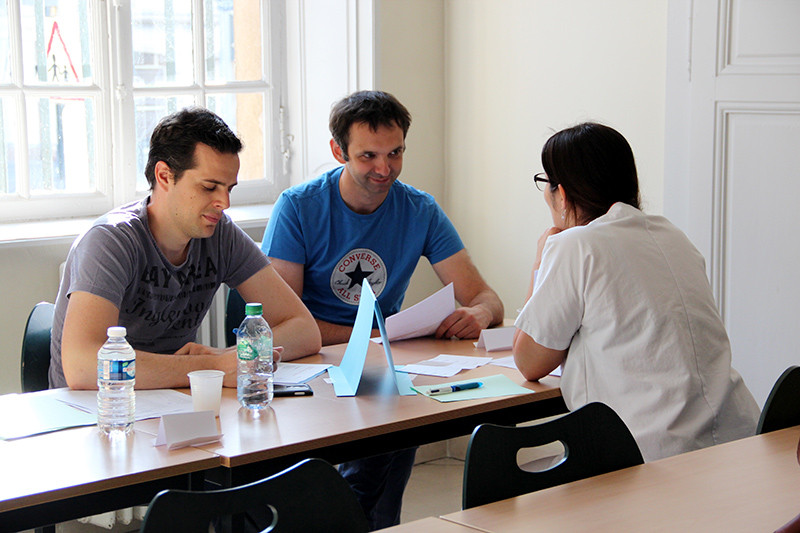 Sur deux journées d’examens, les étudiants passent stations dites « avec matériel » qui évaluent leur capacité à conduire techniquement un acte clinique, puis 4 stations « sans matériel » qui correspondent à une séquence scénarisée dans laquelle un enseignant joue le rôle du patient selon un scénario prédéfini. Ces dernières permettent d’évaluer leur capacité d’analyse d’une situation clinique, leur comportement en situation, leur capacité à conduire un entretien et à expliquer le traitement adapté. La durée des deux types de station est respectivement de 8 et 6 minutes chronométrées. Un enseignant évaluateur coche sur une grille les compétences ou réponses attendues lorsqu’elles sont accomplies.