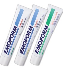 La marque suisse Emoform propose trois dentifrices formulés spécifiquement pour les dents et les gencives sensibles, distribués en pharmacies et parapharmacies. Les deux premiers (arôme menthe et arôme anis) constituent la gamme Gencives et aident à prévenir les irritations, décongestionnent et tonifient les gencives. Le troisième est destiné aux dents sensibles. Il renforce l’émail et favorise la prévention des caries.