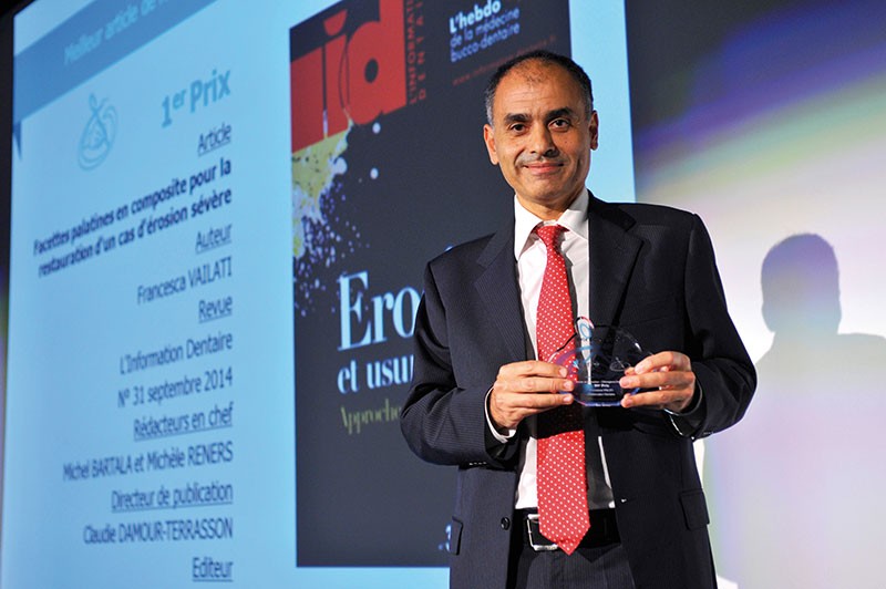 Son auteur était représenté sur scène par le Dr Jean-Pierre Attal, coordinateur avec le Dr Gil Tirlet du numéro spécial Érosions et usures sévères dans lequel figurait l’article primé (septembre 2014).