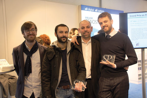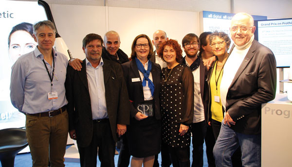 Au moment de la remise du prix, Yves Allard et Hervé Maréchal entouraient Daniela Prelog, présidente d’Ivoclar Vivadent SAS, Didier Cadioux, directeur marketing, et Claudie Damour-Terrasson, présidente du groupe Espace id.