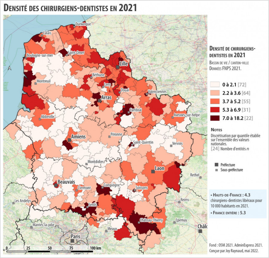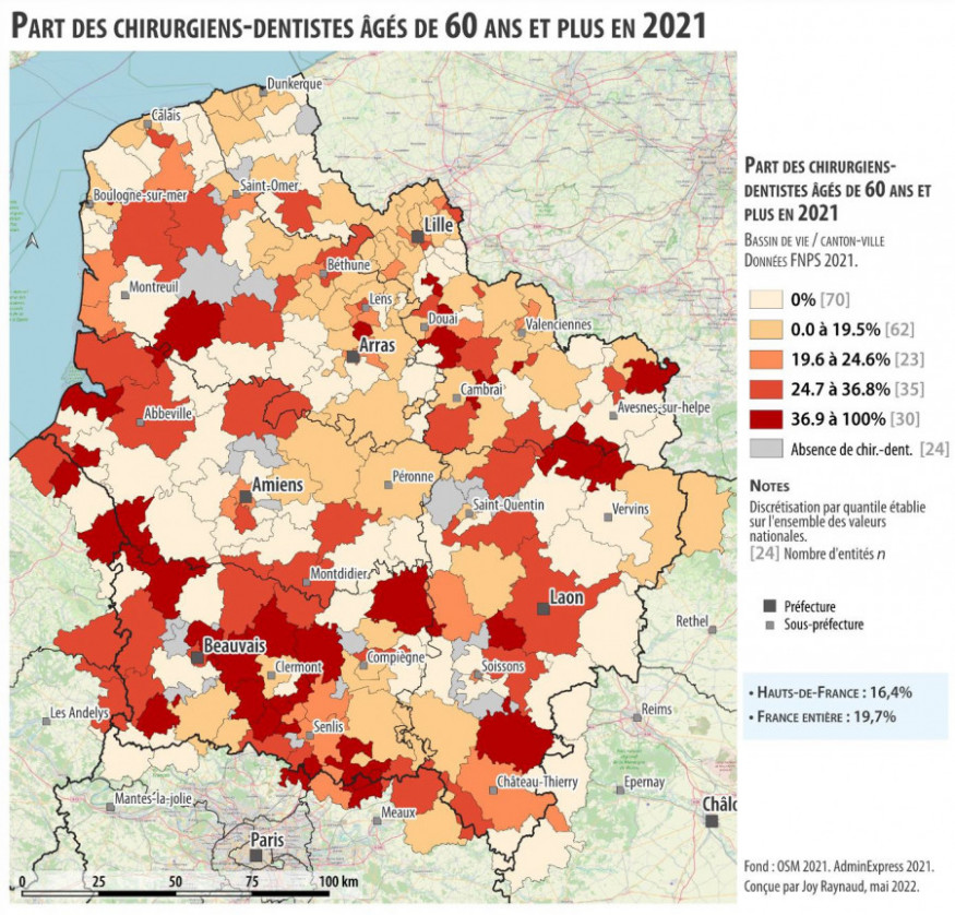 « Sur l’ensemble des 244 territoires des Hauts-de-France retenus comme trame territoriale du zonage, 24 ne comptent aucun chirurgien-dentiste », souligne l’URPS.