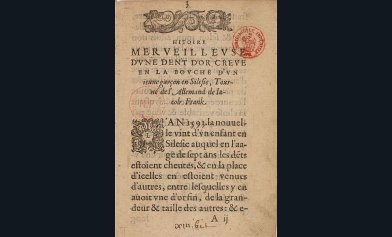 Par bonheur, un certain Jacob Frank résume sa précieuse observation clinique dans un texte en langue vernaculaire de six pages, intitulé L’histoire merveilleuse d’une dent d’or.