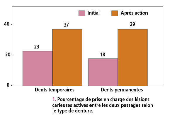 Lors de cette action, le constat de la première étape montrait un état alarmant en matière de prise en charge des lésions carieuses.
