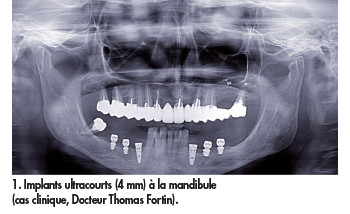 L’European Association of Dental Implantologist, lors de sa 11e conférence de consensus européen (European Consensus Conference) du 6 février 2016 à Cologne, a publié des recommandations cliniques sur l’utilisation des implants courts en prenant soin de considérer, d’une part, les implants courts (de 4 à 8 mm de longueur) et, d’autre part, les implants ultracourts (4 mm) (fig. 1).