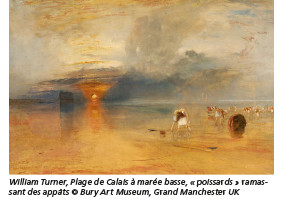 Turner, le grand précurseur. Pas d’Impressionnisme sans lui, qui en annonce tant de principes : peinture de paysage, plein air, séries, éclaircissement de la palette, audace dans le maniement de la couleur et primat de celle-ci sur le trait pour donner la forme… Monet, surtout, doit beaucoup à ses hardiesses qui révolutionnèrent la peinture au tout début du XIXe siècle. Mais l’ampleur de son apport dépasse largement l’Impressionnisme, jetant un pont unique dans l’histoire de l’art entre le classicisme de Claude Lorrain et l’abstraction lyrique de Rothko. Élève à quatorze ans de la Royal Academy of Arts, en pleine Révolution Française, il se passionne pour l’architecture, la topographie, la perspective, la gravure et ses aquarelles de paysages anglais connaissent vite un vif succès. En 1802, une paix relative permet au jeune homme, boulimique de voyages et peu enclin au brexit, de parcourir la France, la Suisse, la Hollande, l’Italie et de découvrir Venise. C’est l’éblouissement : la magie des ciels noyés dope son énergie à peindre des flamboyances de plus en plus tourbillonnantes, où l’imaginaire le dispute à la vérité, où les rouges et les jaunes éclatent et où le sujet disparaît presque, au profit d’une symphonie de lumières. Prisé des connaisseurs, ce style déconcerte la majorité des contemporains du peintre, qui le disent atteint de « fièvre jaune » quand ils ne l’accusent pas de tirer sur la toile avec un tromblon rempli de pigments. Expérimentateur intrépide, Turner fait feu de tout bois : le bleu de cobalt qui vient d’être inventé, le jaune de chrome versé en nappes, le smalt à peine broyé, le noir d’os, le vermillon, tout devient sous ses doigts medium d’une vibration nouvelle de la couleur. Il connaît à fond les traités sur la question, ceux de Newton, de Goethe et de Moses Harris notamment, et démontre que des tons très variés peuvent être obtenus en juxtaposant ou superposant savamment les trois primaires. Outre cette science chromatique, il maîtrise aussi celle des valeurs et excelle à transposer dans le noir et blanc de la gravure les subtilités infinies de ses gouaches, aquarelles et huiles, entre lesquelles d’ailleurs les différences tendent à s’estomper. L’invention du tube de métal est une libération supplémentaire, qui facilite encore son travail dans sa barque-atelier de la Tamise et surtout ses voyages d’exploration de la lumière sous tous les climats. Celui de la méditerranée n’est bien sûr pas oublié dans cette importante, riche et splendide exposition.
