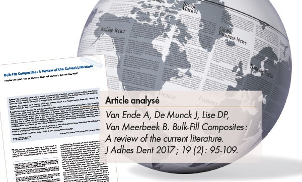 Van Ende et son équipe proposent, au travers d’une analyse de la littérature rédigée sous la direction du très influent Bart Van Meerbeek, une évaluation des composites « bulks » actuellement disponibles. Si leur principal avantage tient dans une procédure plus rapide et plus simple, ils ont aussi l’avantage de la photopolymérisation qui permet la maîtrise du temps de travail pour la mise en forme de la restauration. Au-delà de la profondeur de photopolymérisation efficace, le contrôle du retrait de polymérisation et de bonnes propriétés mécaniques constituent le cahier des charges de ces composites pour valider leur usage.