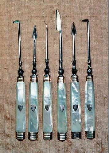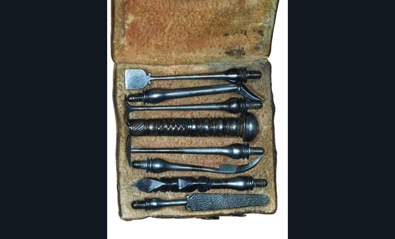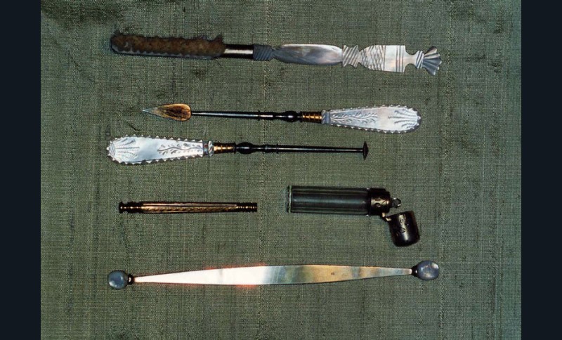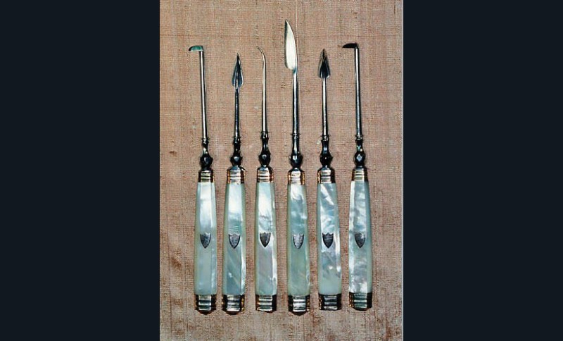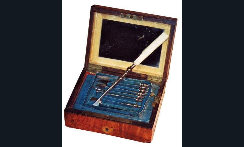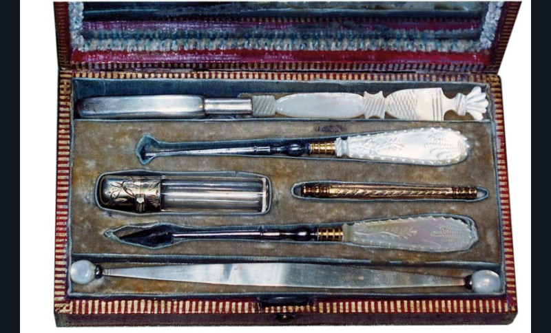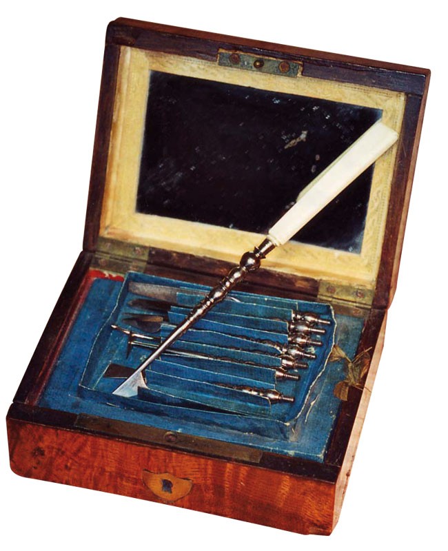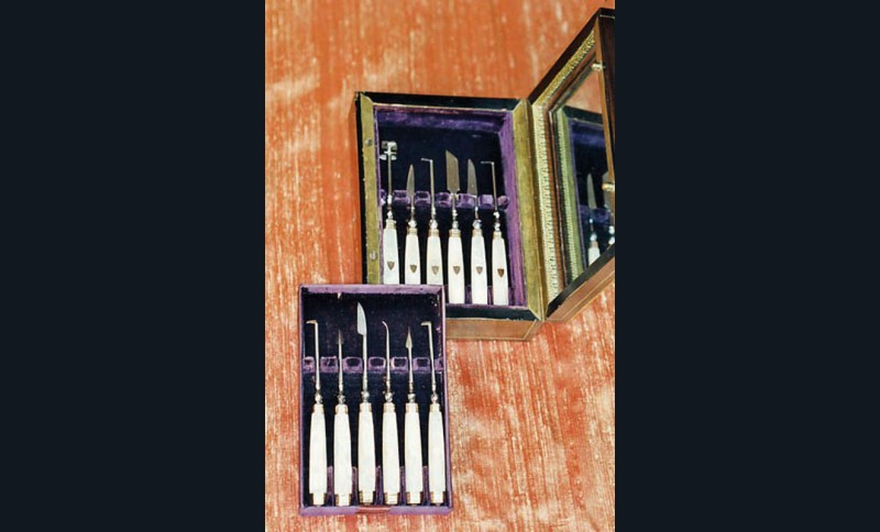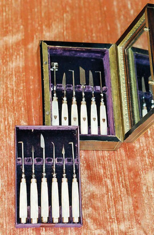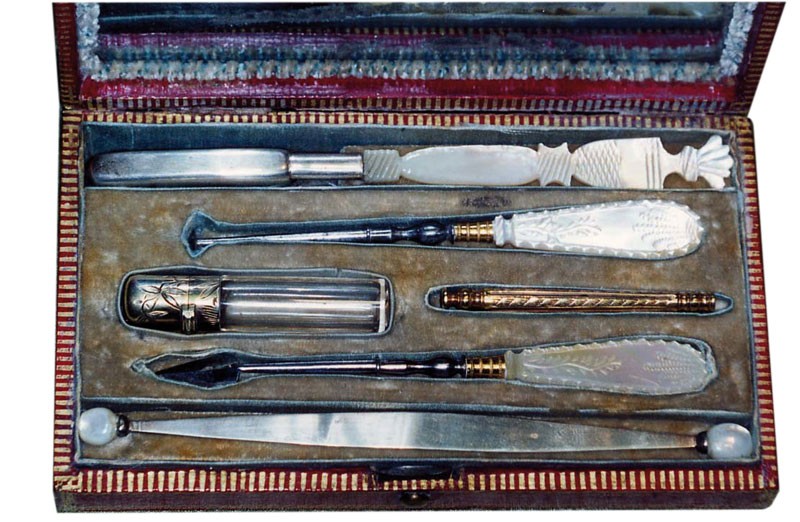 Il a toujours été nécessaire, parfois immédiatement, de se curer les dents, de dégager une arête de poisson, de chasser un morceau de tartre, de limer un morceau de dent fracturée. D’où l’utilité de ces ensembles instrumentaux. Les particuliers, surtout depuis le XVIIe siècle, ont souvent détenu ces outils d’hygiène élémentaire pour un minimum de confort et progressivement aussi dans un souci esthétique. Saint Simon évoque ainsi les problèmes d’odeurs et, souvent, l’haleine diabolique de ses contemporains ! À la fin du XVIIIe siècle, avec les débuts de l’usage de la brosse à dents, les habitudes d’hygiène évolueront et ces nécessaires deviendront progressivement indispensables à toute une partie de la société. Ils seront bien adoptés au XIXe siècle, comme en témoignent les nécessaires qu’il est aujourd’hui facile de dénicher dans les brocantes ou les ventes aux enchères. Car s’ils ne sont plus en usage aujourd’hui, leur charme demeure et continue de séduire.