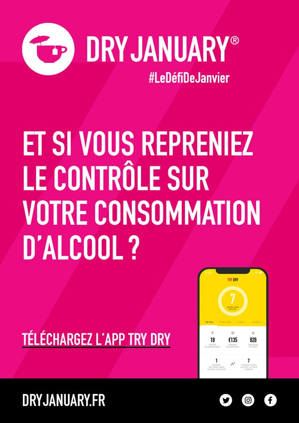 Le #DryJanuaryFR est de retour. Le Défi de Janvier, c’est ultra-simple : ne pas boire une goutte d’alcool à partir de votre heure de lever le 1er janvier jusqu’au 31 janvier minuit. L’intérêt ? Donner un répit à son corps après des fêtes de fin d’année souvent très arrosées, mais surtout mesurer son rapport à l’alcool, repérer notamment ces verres qui ne correspondent pas à un choix délibéré mais plutôt à une routine…