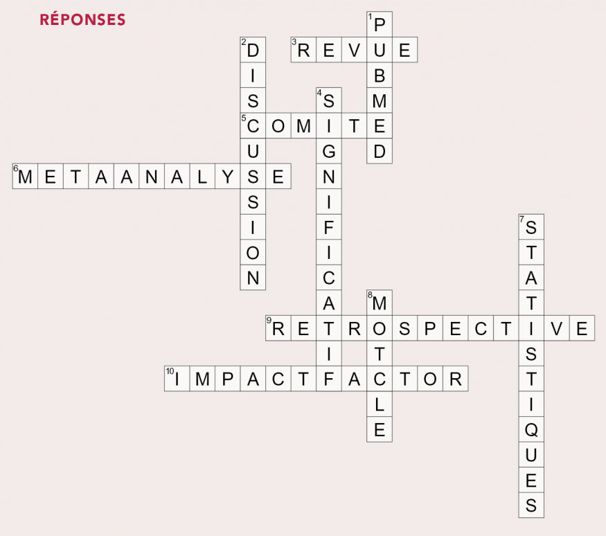 Après la grille-réponse, en page suivante, des explications vous seront livrées pour aller plus loin dans la compréhension du langage de la presse médicale internationale.