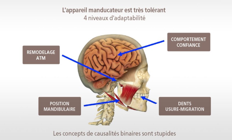 Ambra Michelotti (Naples, Italie) rappellera que si l’occlusion a été considérée pendant des années comme l’un des principaux facteurs étiologiques des DTM, les relations entre DTM et dysfonctions occlusales signalées à l’heure actuelle à travers les études sont peu nombreuses. De plus, la correction de la malocclusion par un traitement orthodontique n’a pas modifié le risque de développer des bruits de l’ATM. Par conséquent, aujourd’hui, le rôle de l’occlusion dans l’étiologie des DTM n’est pas clairement abordé et ne doit donc pas être surestimé, considérant également que, dans certains cas, les modifications occlusales pourraient être la conséquence plutôt que la cause des DTM.