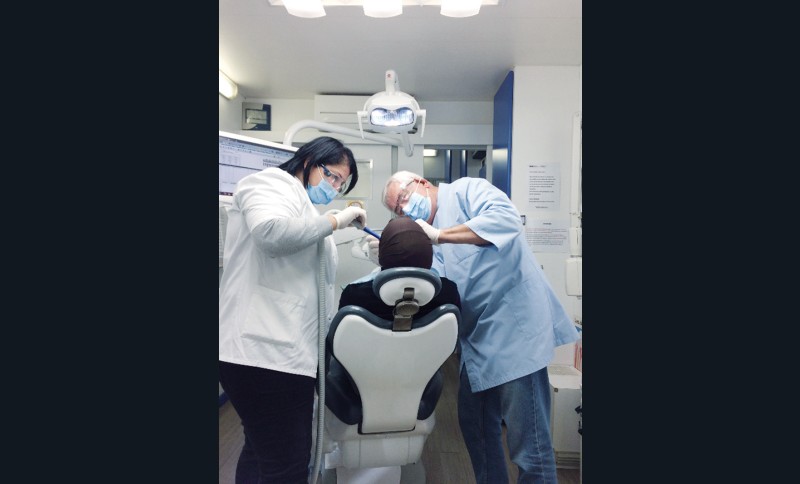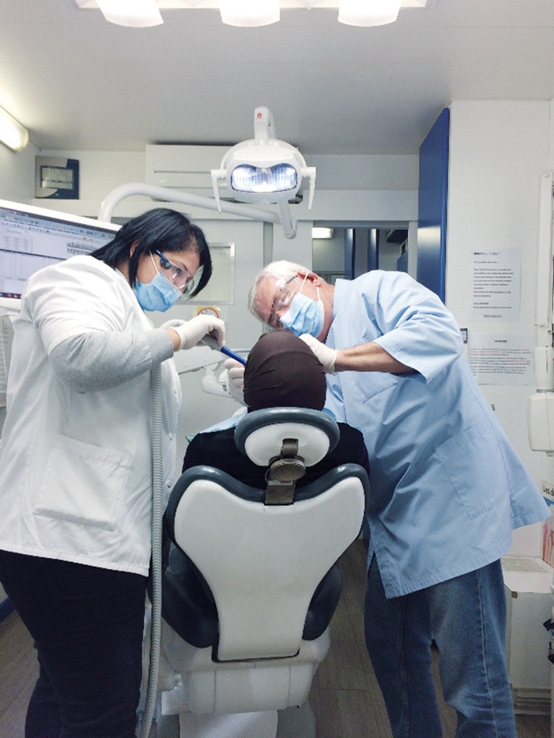 Exacte réplique d’un cabinet traditionnel, le Bus Dentaire est une structure dentaire et sociale qui répond aux situations d’urgences des personnes défavorisées ; elle travaille à reconstruire le lien social et conduit progressivement les patients vers des structures fixes. Ce Bus va au-devant de personnes qui spontanément ne se rendraient pas dans des cabinets privés ou des centres dentaires. Cette année, 2 200 personnes y ont été soignées.