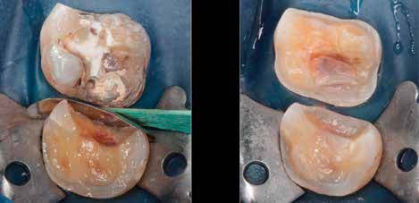 Les réparations intraorales de restaurations en composite et en vitrocéramique fonctionnent bien, mais la réussite dépend du conditionnement de la surface. Dans mes mains, la création d’une rugosité de la restauration par un traitement tribochimique et la silanisation ont fait leur preuve. Grâce à la bonne adaptation de la teinte et à l’aptitude au polissage, on peut réaliser des réparations imperceptibles.