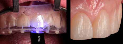 Grâce à la composition du matériau, G-ænial Universal Injectable convient à toutes les applications. J’apprécie le fait de pouvoir travailler dans mon cabinet avec seulement quelques matériaux. D’une part, cela simplifie la logistique et le stockage. D’autre part, cela apporte plus de calme dans le processus de traitement. Par sa viscosité thixotrope, G-ænial Universal Injectable peut être utilisé efficacement dans de nombreuses techniques d’obturation et mon travail quotidien s’en trouve considérablement simplifié. Le matériau reste stable et ne se déforme pas pendant l’application, mais il reste fluide pendant le modelage. Par exemple, j’utilise le composite pour la technique de moulage par injection semi-directe. Pour ce faire, je fabrique une clé en silicone à partir d’un silicone transparent (EXACLEAR, GC) sur la base d’un wax-up. Le composite est ensuite injecté par le biais de petits canaux conçus pour l’injection et photopolymérisé à travers la clé transparente. Cette technique fonctionne vraiment très bien avec G-ænial Universal Injectable en raison de son excellente consistance thixotrope.