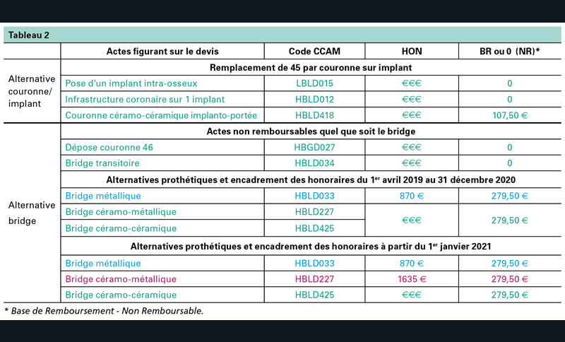 – au 1er janvier 2021, le bridge céramo-métallique pour remplacer une dent autre qu’une incisive entre dans le panier RAC-M. Le bridge céramo-céramique reste dans le panier HL.