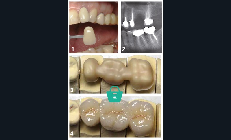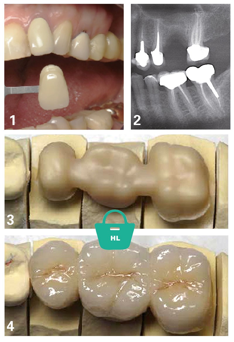 La situation clinique apporte souvent une réponse claire. Ici, il paraît indispensable de proposer une solution esthétiquement acceptable, comparable aux coiffes céramo-métalliques déjà présentes sur les dents piliers. On peut, bien sûr, à partir du 1er janvier 2020, évoquer une solution RAC-0 dans pareille situation, c’est-à-dire un bridge métallique ! Mais le contexte clinique s’impose et s’oppose à une telle alternative.