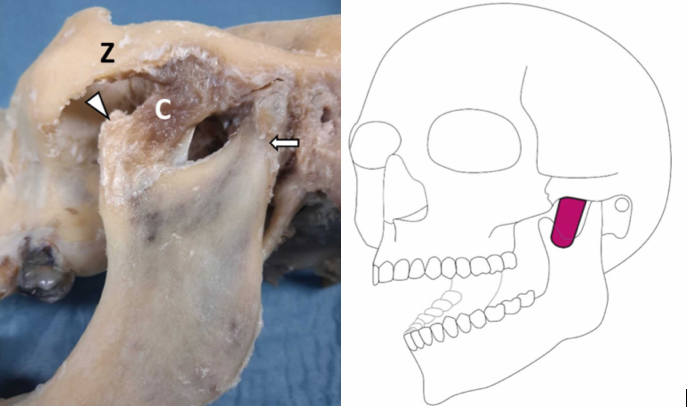 Après une étude anatomique de 12 têtes de cadavres humains fixées au formaldéhyde et une exploration tomographique 16 cadavres frais, les chercheurs ont clairement localisé « une troisième couche profonde anatomiquement distincte du muscle masséter allant de la surface médiale du processus zygomatique de l’os temporal à la racine et au bord postérieur du processus coronoïde ». Ils ont d’ailleurs nommé leur découverte « partie coronoïde » du masséter.