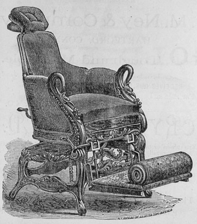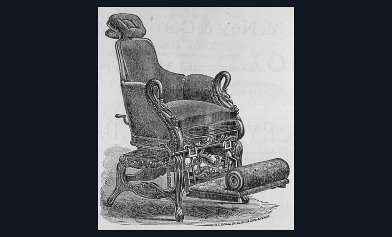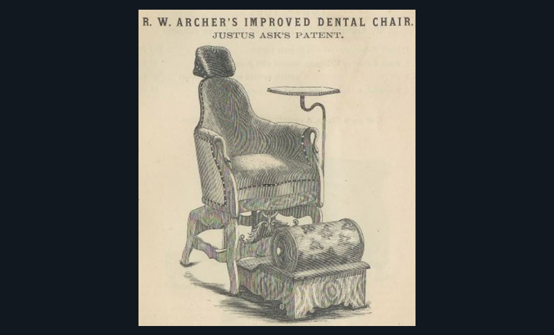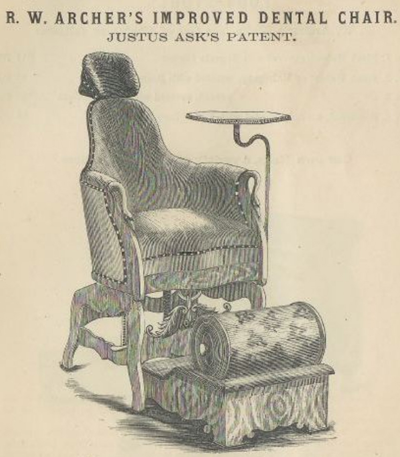 Une publicité de ce fauteuil dans le Dental Advertiser de 1874 souligne que quatre mille fauteuils de Justus Ask Archer ont déjà été vendus en une dizaine d’années !